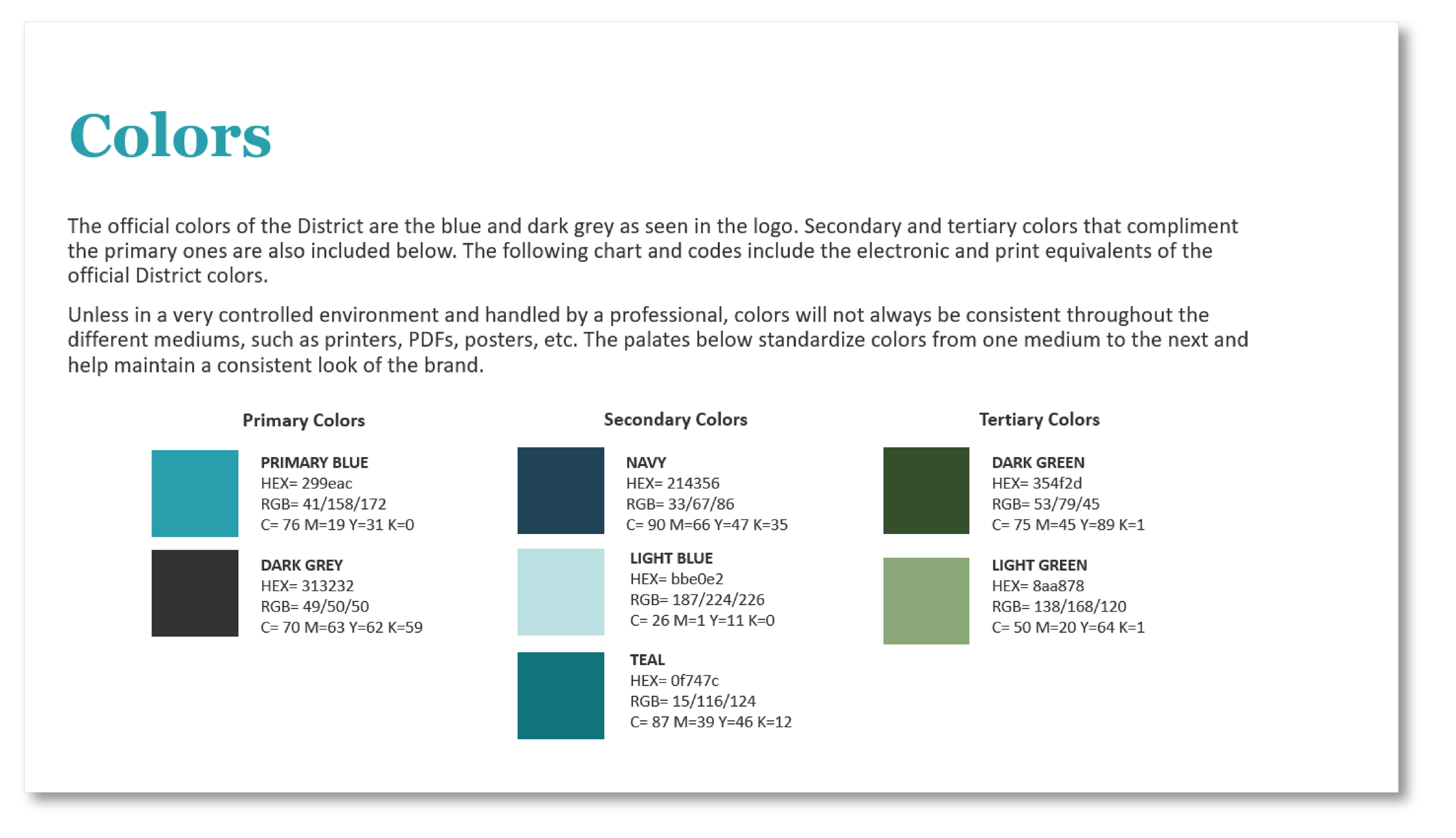 To strengthen community awareness and recognition of the District, I streamlined the organization’s existing logo and brand standards to ensure consistency both internally and externally. In collaboration with local vendors, I redesigned the organization’s website, printed branded gear for staff, and generated print and digital resources for the District’s various audiences.