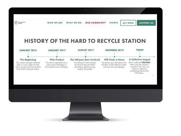 The Alliance Center’s Hard to Recycle Station serves as a vital resource for community-based waste diversion. I created a range of supporting materials—including signage, infographics, web content, and educational resources—to raise awareness, encourage participation, and support funding efforts. These tools helped expand the station’s reach and impact within the broader community.